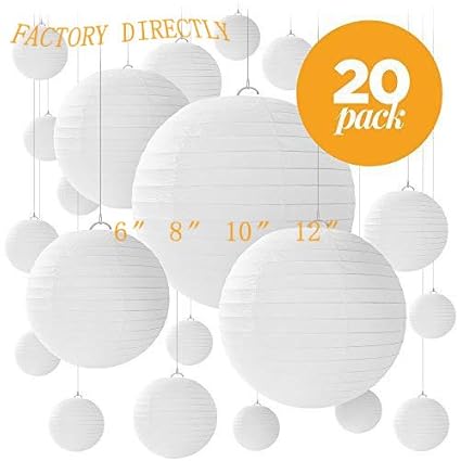Chinese Paper Lanterns In White Color Assorted Sizes 20 Pack 6 8