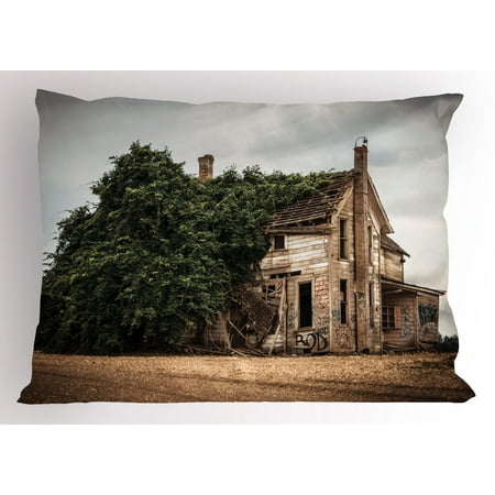 Rustic Pillow Sham Ancient And Historical House With Overgrown