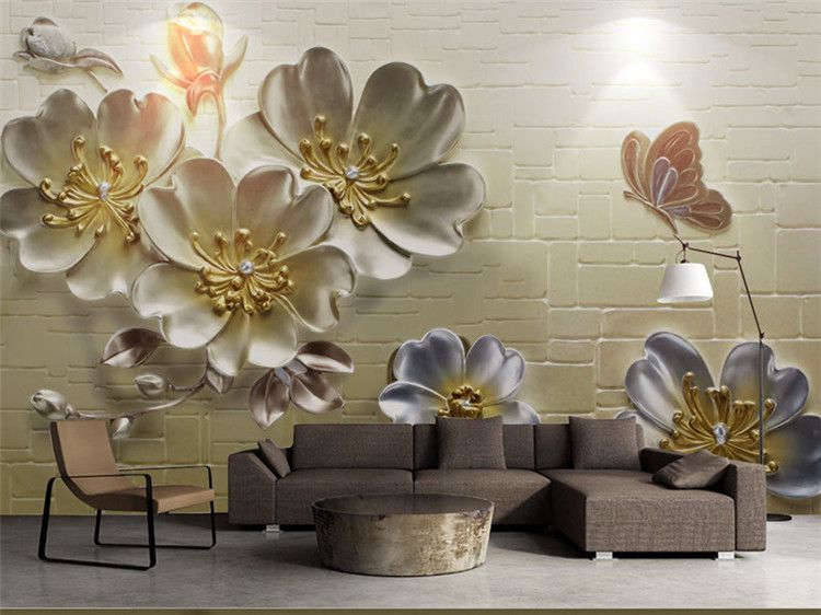 Custom Photo 3d Stone Wallpaper Butterfly Flower Tv Background Wall