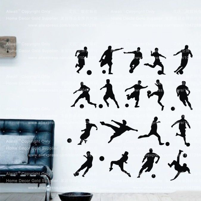 Home Decor Stickers Energetic Soccer Football Players Art Wall