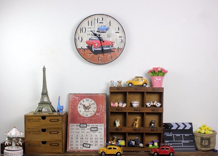 Wholesale Aibei Zakka Red Sports Cars Wood Wall Clock Fashion Home