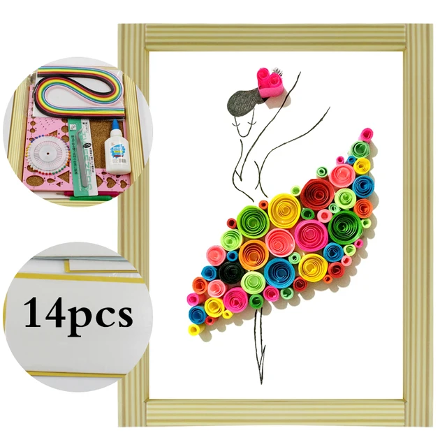 16 Colorful Quilling Paper Craft Kits 14pcs Tool Set Rolling Strips