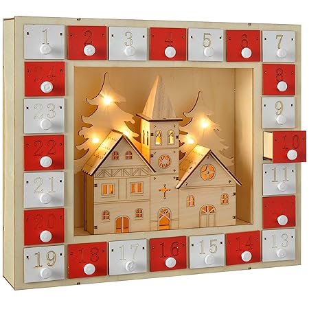 Werchristmas Pre Lit Wooden Church Scene Advent Calendar Christmas